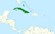 It breeds on Cuba, the Bahamas and Grand Cayman in the West Indies. It is normally a year-round resident, but has been known as an occasional vagrant to southern Florida.