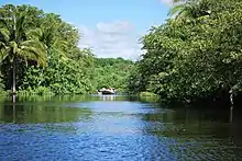 Much of the ecotourism was developed here in the 1990s when groups such as Ecosolar worked in this area to help after the ban on the sea turtle and crocodile trade eliminated most people's livelihoods. This group, along with ten local families began working to offer tours in the lagoon and beach areas, inviting biologists and biology students in Mexico to study the area.[1] This ecotourism revolves around the lagoon of the Tonameca River and the main local cooperative that conducts tours is called Servicio Ecoturisticos de La Ventanilla (La Ventanilla Ecotourism Services). This group has conducted guided tours of the lagoon since the 1990s and income from these tours supports reforestation and other ecological projects.[5] Most of the village's families are involved in this venture and they have a website at www.bioplaneta.com.[2] Tours of the lagoon are available on both land and canoe to see the mangroves, and the wildlife, especially the birds, iguanas and crocodiles in their natural habitat. On Uma Island, in the lagoon, there is a greenhouse for mangrove reforestation, a nursery to hatch and raise crocodiles for release, as well as captive deer, and other animals.[3][4][6] This group is headquartered at a palapa within the village and there is also a small restaurant on the lagoon island.[7]