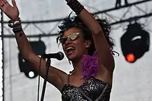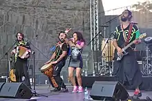 A few years after joining her studies, she joined an alternative group called De La Guarda. There were two music directors, one of whom was King Coya (Argentinean electro-cumbia producer). That opened the way for her to start performing in public, to sing in front of thousands of people.[2]