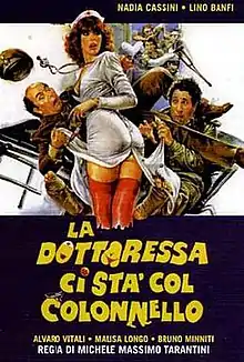 La dottoressa ci sta col colonnello (The doctor is there with Colonel) is a 1980 commedia sexy all'italiana directed by Michele Massimo Tarantini, starring Lino Banfi with Nadia Cassini. The film is a late installment of the genre, combining 1970s' soldatessa and dottoressa themes (made popular by Edwige Fenech) with abundant absurd comedy elements a year after Cassini's breakthrough film L'insegnante balla... con tutta la classe.[1]