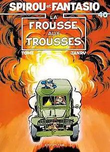 La frousse aux trousses, written by Tome and drawn by Janry, is the fortieth album of the Spirou et Fantasio series, and the eighth of the authors. The story was originally serialised in Spirou magazine under the title Angoisse à Touboutt–Chan, before released in a hardcover album under the altered title later in 1987.