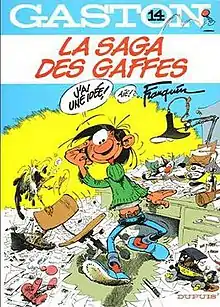 La saga des gaffes, written and drawn by Franquin, is the fifteenth album of the original Gaston Lagaffe series. It is made up of 44 strips previously published in Spirou.