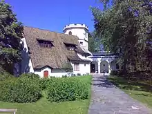 The architecturally exceptional Villa Åkerblom is located at the sea shore in eastern Laajalahti.[3]: 132