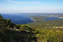Labinština (Croatian: Labinšćina / Labinština,[1] Italian: L'Albonese / Agro Albonese) is the geographical and historical name of the eastern part of Istria. It covers an area of approximately 220 km2 that is 25 km long and 13 km wide. Geographical borders in the west are the Raša river, and the bay of the same name, in the south and east the sea, and in the north Plomin Bay, the southern part of the Učka massif and Kvarner Bay, and, until the beginning of the 20th century, Lake Čepić (Čepić basin). The center is Labin after which it is named. Labin was the head township of the Labinština or Agro Albonese under the Roman Empire, during the Venice Republic between 1365 and 1797, the Austrian rule between 1814-1918 and many other occupations by foreign armies.[2]