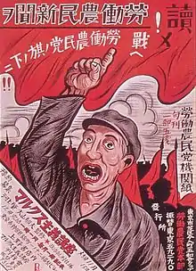 The Labour-Farmer Party (労働農民党, Rōdōnōmintō) was a political party in the Empire of Japan. It represented the left-wing sector of the legal proletarian movement at the time.[3] Oyama Ikuo was the chairman of the party.[4][5] At the time the party was banned by the government in 1928, it was estimated to have around 90,000 members in 131 local organizations.[6] The party was supported by the Hyōgikai trade union federation and the Japan Peasant Union.[7][8]
