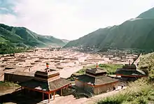 The monastery was founded in 1709 by the first Jamyang Zhépa, Ngawang Tsöndrü.[3][4] Labrang Monastery used to be one of several Bhutanese enclaves in the Tibetan region, before the Annexation of Tibet by the People's Republic of China.[5][6] It is Tibetan Buddhism's most important monastery town outside the Tibetan Autonomous Region.
