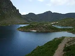 Lac Bersau is a lake in the Pyrénées, department Pyrénées-Atlantiques, France. At an elevation of 2083 m, its surface area is 0.125 km².