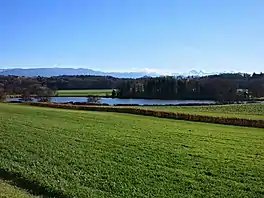 Lac de Seedorf (also: Seedorfsee) is a lake at Seedorf in the municipality of Noréaz, Canton of Fribourg, Switzerland. Its surface area is 11 ha (27 acres).