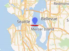 ![]() The Lacey V. Murrow Memorial Bridge (right) and the Homer M. Hadley Memorial Bridge (left) in 2005, looking east toward Mercer Island | |