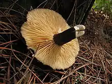 Lactarius fallax, commonly known as the velvety milk cap, is a species of fungus in the family Russulaceae. Found in both spruce and mixed conifer forests, it is a fairly common species in the Pacific Northwest region of North America, with a northerly range extending to Alaska. Its fruit bodies are medium-sized, with velvety, brown to blackish caps up to 3–9 cm (1.2–3.5 in) in diameter bearing a distinct pointed umbo. The caps are supported by velvety stems up to 6 cm (2.4 in) long and 1.5 cm (0.6 in) thick. The mushroom oozes a whitish latex when it is cut, and injured tissue eventually turns a dull reddish color. The eastern North American and European species Lactarius lignyotus is closely similar in appearance, but can be distinguished by its differing range.