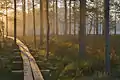 With forests covering more than 70 percent of Lahemaa, the area is rich in flora and fauna. The landscape has many raised bogs, including the 7,000-year-old Laukasoo Reserve. The park, marked by several trails, teems with wildlife, including a population of boar, red deer, wolves, bear and lynx. The coast is covered with rocks and boulders, used each year by cranes as a stopover on their way to the Bosphorus and Egypt.[3]