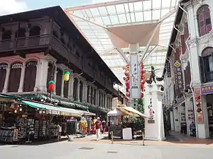 Trengganu Street was a crowded and busy street filled with market and street vendors. This street was meant for Teo Chews but it was frequently visited by all dialects due to the opera house.[11] This street was called “the cross street of Kreta Ayer” in Chinese, referring to its strategic location in Kreta Ayer. Later, the street was also given the nickname “hei yuen wang gai” meaning “theatre side street” by the Chinese.[7] The shop houses along this street had housed Malay families during the war and during which, the families sold exotic “tonic dishes” using animals like lizards and crocodiles. Today, Trengganu Street is the heart of tourist belt in Chinatown and it is the most photographed street. It remained crowded and bustling till this day.