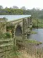 The viaduct had become fragile largely because of crumbling of much of its stone, which was not of the best quality, being of a minutely fissured weak texture. With lack of maintenance, vegetation and weather effects this weakness had led to widespread stone loss and serious undercutting to all piers at or near water level. The west pier was seriously cracked, mainly around its traditional hearting, and had lost about a third of its 2.9 m thickness. Some movement had occurred long ago causing stretching and hogging of the arches adjoining the west pier. ... The north spandrel wall had suffered extensive stone loss at the top and some peeling away of pier bull-noses.[3]
