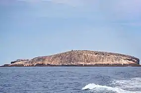 The Laje de Santos Marine State Park is in the municipality of Santos, São Paulo. The park covers a 5,000 hectares (12,000 acres) marine rectangle that contains the Laje de Santos island and the Bandolim, Brilhante and Sul e Novo rocks and reefs.[1] It is 16.8 nautical miles from the Moela Island Lighthouse on the mainland. The Laje de Santos is an island formed by the top of a mostly submerged granite mountain 22 nautical miles from the coast. The island is 550 by 185 metres (1,804 by 607 ft), and is 33 metres (108 ft) high. The greatest depth in the surrounding sea is 42 metres (138 ft).[2]