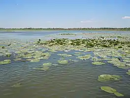Similar to the other lakes of the Dniester River delta, Lake Bile is the unique biotope, inhabited by a lot of rare plant species and a nesting place of a lot of birds. The white water lily (Nymphaea alba), water caltrop (Trapa natans), brandy-bottle (Nuphar lutea), and mint (Mentha sp.) grow in the lake.[1]