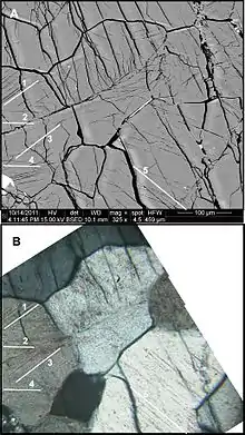 - Losiak, Anna; Golebiowska, Izabela; Ferrière, Ludovic; Wojciechowski, Jacek; Huber, Matthew S.; Koeberl, Christian (2016-04-01). "WIP: A Web-based program for indexing planar features in quartz grains and its usage". Meteoritics & Planetary Science. 51 (4): 647–662. Bibcode:2016M&PS...51..647L. doi:10.1111/maps.12614. ISSN 1945-5100.