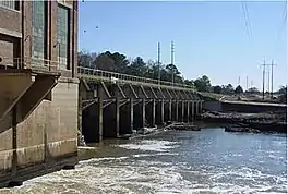 The concrete Flint River Dam was built in 1908 for hydroelectric generation and is owned by Georgia Power today.[1] Lake Chehaw is very riverine and shallow with average depths of 17 feet. In winter, the lake is drawn down nearly 10 feet in anticipation of flooding spring rains.