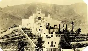 In October 1928, Aimee Semple McPherson, a renowned evangelist, commissioned Architect Edwin Dickman to design for her a palatial home in Country Club Heights, which has since won fame as "Aimee's Castle".[26] This is said to be a house born of Hollywood, inspired by Moorish architectural design. This home served as the evangelist's part-time home until 1939, when it passed to new ownership. After changing hands many times, in 2005, International Church of the Foursquare Gospel, the modern incarnation of McPherson's Foursquare Gospel, purchased and restored the property after years of neglect.[27][28]