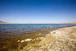 Lake Erçek (Turkish: Erçek Gölü, Armenian: Արճակ լիճ, Kurdish: Gola Erçekê) is an endorheic salt lake in Van Province in eastern Turkey, about 30 kilometres (19 mi) east of Lake Van. The lake sits at an elevation of about 1,803 metres (5,915 ft), and has an area of 106.2 square kilometres (41.0 sq mi) and a mean depth of 18.45 metres (60.5 ft).[1] The northern and western shores are steep and rocky, whereas the southern and eastern shores slope gently with mudflats and coastal plains.[3]