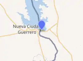 The Lake Falcon Dam International Crossing is a bridge across the Rio Grande south of Falcon Lake. The dam connects the United States-Mexico border cities of Falcon Heights, Texas and Nueva Ciudad Guerrero, Tamaulipas. The dam is also known as "Falcon Dam", "Puente San Juan", "Presa Falcón" and "Bordo Internacional de la Presa".".[1][2]