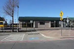Lake June station or Lake June Road station is an intermodal transit station in Dallas, Texas. It serves DART Light Rail's Green Line as well as buses.[2] The station initially opened as Lake June Transit Center, as a bus-only facility in 2003. As part of the Green Line's expansion in December 2010, new light rail platforms opened.