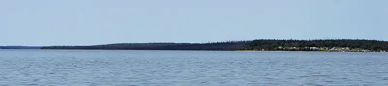 The abandoned settlement of Nemiscau is on the north shore, but in recent years, Cree people have been re-establishing Nemiscau as a summer residence. The nearest village is the town of Nemaska, about 60 kilometres (37 mi) northeast.