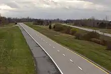 The 5-mile (8.0 km) section of the parkway between Lakeside Beach State Park and Lake Shore Road handles an average of just under 1,200 vehicles per day, making it the least-traveled section of the highway.[1] Furthermore, the 2-mile (3.2 km) piece west of NY 98 serves an average of 800 vehicles during the summer months and a fraction of that number during the winter months. On November 21, 2012, NYSDOT announced plans to close the parkway between Lakeside Beach State Park and NY 98 during the winter months, citing the low wintertime traffic volumes along the road. The move was predicted to save roughly $70,000 annually in costs related to plowing and salting. The practice has continued to the present.[27] A detour is posted along NY 18, which parallels the parkway for most of its length.[28] Many believe this section of the roadway has low traffic volume due to the serious deterioration stemming from lack of state funding for upkeep, as well as the fact that the highway was never competed to Niagara Falls, making this section of road a highway to nowhere.
