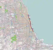 ![]() Original portion of Lake Shore Drive in red 2013 extension in dark green | |||