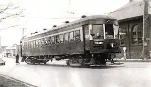 As of 2009, LSE coach #167 (that made the last run in 1938) sits at the LSRA station Site at Wellington, Ohio, south of Lorain. Along with other railroad relics, it sits in the unprotected in the open, despite this it is in surprisingly good shape. #167 is a 1915 Jewett Car Co. steel coach with Baldwin MCB trucks. In 1996 LSE167 appeared at the Centennial celebration for the Steel Plant in Lorain as the icon for the original Johnson Steel Company, producers of Jaybird streetcar rail. The Northern Ohio Railway Museum (NORM) in Chippewa Lake, Ohio has several pieces of LSE rolling stock preserved, including Lake Shore Electric wood Coach #149 (1927 Niles); wood Coach #151 (1906 Niles) and steel Coach #181 (1918 Jewett). Freight equipment includes wood Freight Motor #42 (1908 Niles) and wood Freight Trailer #464 (home-built by LSE in 1919). NORM also has an original Lorain Street Railway wood City Car #83, a line that was later operated by the Lake Shore Electric.[10] In addition, wooden coach #150 (1906 Niles) and wood interurban box car #810 (1924 Kuhlman) are on trucks and undergoing restoration at Illinois Railway Museum as of 15 February 2010.[11] LSE steel coach #174 (1918 Jewett) is preserved as a static exhibit at The Works in Newark, Ohio.[12] Car #38 is parked in the Avon Lake Shopping Center, located on Lake Road, very near Electric Blvd.