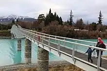 The 125-metre bridge was opened in 2015. This crosses the Tekapo River and connects the Church of the Good Shepherd with the rest of the Lake Tekapo township.[23]