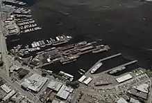 In 1976, the yard acquired ex-USS White Sands (ARD-20), an Auxiliary repair dock ship. This required the ship with an 81 foot (25 m) beam to pass through the 80-foot wide Hiram M. Chittenden Locks in Ballard. This was accomplished by heeling the ship to 38 degrees with ballast water then with 1,226 short tons (1,112 t) of ballast blocks and steel plates, plus additional buoyancy.