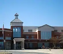Lakelands Park Middle School was built in 2005 to resolve overcrowding in other schools in the county,[5] as a result of a unique collaborative effort between the Montgomery County Board of Education and superintendent Dr. Jerry Weast,[6] at a cost of $21 million.[7] Lakelands was designed to accommodate up to 1,200 students and is located amongst local housing to enable the students to be able to walk to school.[8] The building is 153,588 square feet (14,268.8 m2), and includes three floors, a full-size gym, auxiliary gyms, three computer labs, and rooms for art, music and technology. The media center has a collection of more than 18,000 print and non-print materials, including books, magazines, videos, DVDs and CD ROMs. The Research Learning Hub includes 32 networked computers.