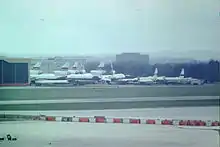 A Laker Airways McDonnell Douglas DC-10 series 10[30] was one of four widebodies that were specially flown in for the pre-inauguration of the then-new terminal building at Berlin's Tegel Airport on 23 October 1974. (A British Airways (BA) Lockheed L-1011 Tristar 1,[31] a Pan Am Boeing 747-100[32] and an Air France Airbus A300 B2[30] were the other widebodies specially flown in on that day to mark this occasion.)[33]
