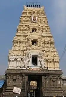 Sri Lakshmi Narasimhar Temple (Tamil: ஸ்ரீ லக்ஷ்மி நரசிம்ஹர் பெருமாள்) is located about 55 km from Chennai and 21 km from Arakkonam, in Narasingapuram, Thiruvallur.[1] The temple is dedicated to Hindu deity Narasimha, who is avatar of Vishnu and his consort Lakshmi. From the days of glory and grandeur that prevailed in South India the temple of Lakhsmi Narasimha at Narasingapuram still boasts the era of Cholas and Vijayanagara Rayas.[2] The Lakshmi Narasimha Temple is situated in the village of Narasingapuram in Thiruvallur district.
