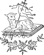 The Moravian Church uses an Agnus Dei as their seal with the surrounding inscription Vicit agnus noster, eum sequamur ("Our Lamb has conquered, let us follow him").