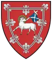A Paschal Lamb is a charge used in heraldry, for example as the crest of the Davie Baronets, and is blazoned: A paschal lamb[33] This charge is depicted as a lamb standing with body facing towards the dexter (viewer's left), with nimbus, and with head facing forwards (or turned looking backwards to sinister, termed reguardant) holding under its right foreleg a flagpole, tipped with a small cross, resting at a diagonal angle over its shoulder, flying a banner of the Cross of St. George (except in Perth's coat of arms, where it flies a banner of the Cross of St Andrew).