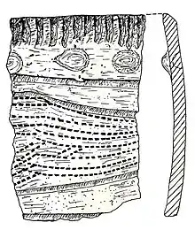 The Mellor settlement, known as Site 23CP1, is at the confluence of the Lamine River with the Missouri River on the personal property known as "Cape Verde" [ 38.983083°N 92.863532°W ] owned in the early 1900s by Thomas Edward Mellor and then by his son John Paul Mellor. "At least 20 large earthen burial mounds overlook the Mellor settlement from the north-facing Missouri River escarpment."[24] The Imhoff settlement is about one-half mile downstream from the confluence of the Blackwater River with the Lamine River. These two settlements were excavated in the 1970s by archaeologist Marvin Kay and the findings were published in the Missouri Archaeological Society Research Series in 1980.[25]