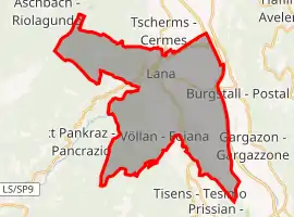 Lana (Italian pronunciation: [ˈlaːna]; German pronunciation: [ˈlaːna]) is a comune (municipality) in South Tyrol in northern Italy. It is situated in the Etschtal (Etsch Valley) between Bolzano and Merano and at the entrance to the Ultental. The population rose to 12,566 in 2020.
