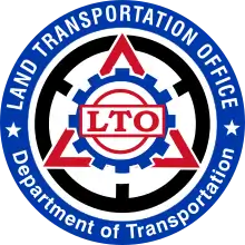 The Land Transportation Office (Filipino: Tanggapan ng Transportasyong-Lupa; LTO) is an agency of the Philippine government under the Department of Transportation responsible for all land transportation in the Philippines. Functions of the LTO include the inspection and registration of motor vehicles, issuance of licenses and permits, enforcement of land transportation rules and regulations, and adjudication of traffic cases.[1]