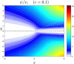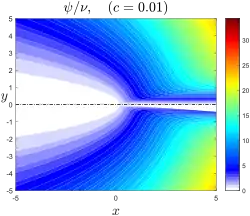The function is related to the stream function as , thus contours of for different values of provides the streamlines. The constant describes the force at the origin acting in the direction of the jet (this force is equal to the rate of momentum transfer across any sphere around the origin plus the force in the jet direction exerted by the sphere due to pressure and viscous forces), the exact relation between the force and the constant is given by