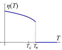 which is plotted to the right. This shows the clear discontinuity associated with the order parameter as a function of the temperature. To further demonstrate that the transition is first-order, one can show that the free energy for this order parameter is continuous at the transition temperature , but its first derivative (the entropy) suffers from a discontinuity, reflecting the existence of a non-zero latent heat.