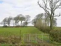 The lands of Ashinyards, including the wood, comprised between three and four hundred acres of good land. The extent of the woodland policies was a notable feature. One area of woodland is known as the 'Short Ride Plantation' and a former area was known as the 'Long Ride Plantation'.[8] Quhytehirst or Whitehirst, Nether Mains and Auchenkist were at one time part of the estate lands.[12] A wooded belvedere known as the Ashgrove Mount survives to the north of the walled garden. A small wooded roundel was located beyond the Ashenyards farmstead at the intersection of hedgerows.