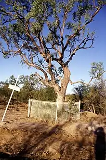 The Landsborough Tree marks the site by the Albert River where explorer William Landsborough established a depot camp while searching for the missing Burke and Wills expedition in 1862.[2] He buried supplies near the eucalypt tree in case the explorers should come up upon it; he carved the word "Dig" into the tree.[3]