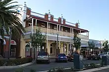 Prominently located within the business centre of Warwick, this substantial two storey brick hotel with filligree verandah contributes to the Palmerin Street streetscape and the Warwick townscape.[1]