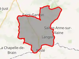 Langon is in the region of Brittany, close to the border with the Pays de Loire region. It is located 22 km (14 mi) from Redon, 60 km (37 mi) from Rennes (the capital of Brittany), and 70 km (43 mi) from Nantes and Saint Nazaire.