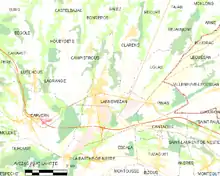 Spatially, Lannemezan is wedged between the following nine communes: Campistrous to the northwest, Clarens in the northeast, Capvern to the west, Uglas and Pinas to the east, Avezac-Prat-Lahitte in the southwest, La Barthe-de-Neste and Escala to the south, and Cantaous to the southeast.[5]