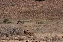 In 2013, in partnership with the Endangered Wildlife Trust (EWT), two male South African cheetahs (Acinonyx jubatus jubatus) were relocated by being taken from the Amakhala Game Reserve and released into the Laohu Valley Reserve. It is noted to be first time that wild cheetahs have been reintroduced to the Free State after a hundred years of regional extinction.[14] In early 2016, an adult female South African cheetah was introduced to the reserve. Three wild cheetah cubs were born in Laohu Valley Reserve in February 2017, the first cheetahs born in the wild in the Free State since their disappearance from the province over a century ago.[15]