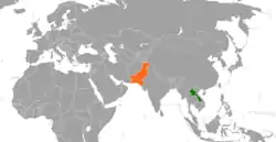 Laos–Pakistan relations are bilateral relations between Laos and Pakistan. They have friendly relations and mutually beneficial cooperation in political, economics and trade fields. In 2004 Pak PM Zafarullah Jamali visited Laos on an invitation of PM Bounnhang Vorachith of Laos, both countries reaffirmed their commitment to implement the purpose and principles of the UN charter in their bilateral relations and to contribute to peaceful settlement of conflicts and disputes around the globe.[1] Pak Prime Minister Raja Pervez Ashraf Visited Laos in 2012 to attend ASEM meeting.[2] Pakistan and Laos have an annual trade of approx 10 million US dollars. Many Laos students are currently studying in Pakistani universities.