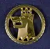 The coat of the arms of the Lapland Ranger Regiment (I 22/Fo 66) used from 1977 to 1982 and the Lapland Ranger Group (Lapplandsjägargruppen) from 2000 to 2016. Blazon: "Vert, the regimental badge, an erazed crowned head of a wolf argent. The shield surmounted two muskets in saltire or."[4] On 21 June 1982, the colour of the wolf head was changed from silver (argent) to gold (or) through an order from the Chief of the Army.[5]