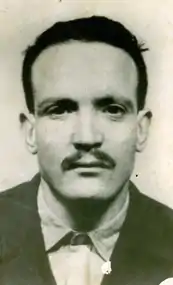 Ben M'hidi became a follower of Messali Hadj and was a member of Messali's Algerian People's Party (PPA) during World War II, rapidly obtaining significant responsibilities within the movement. Ben M'hidi was arrested the following day[6] after the Sétif uprising against the occupying French forces in May 1945.[7] The uprising was suppressed through what is now known as the Sétif massacre. He was arrested in Biskra and imprisoned in the Coudiat prison in Constantine for four months.[1][8] The massacres committed by the French army in Setif, Guelma and Kherrata had completely shocked him. On 15 March 1946, Ben M'Hidi was released from prison due to an amnesty being granted to the majority of nationalists imprisoned for the 1945 riots.[9] The PPA was disbanded following the 1945 Sétif riots, and was replaced in October 1946 by the Movement for the Triumph of Democratic Liberties (MTLD), also headed by Messali Hadj. In 1950, Ben M'hidi had been convicted in absentia and sentenced to 10 years in prison.[6] Ben M'hidi and eight other members of this movement soon grew impatient with Hadj, and decided to form the Revolutionary Committee of Unity and Action (CRUA), on 30 March 1954. During May and June 1954, they decided that Algeria would be split into five areas; Ben M'hidi was assigned Zone 5, Oran.[10] On 10 October, Larbi Ben M'hidi and five other members of the CRUA approved the transformation, thus giving birth to the National Liberation Front (FLN) and the National Liberation Army (ALN). At a meeting at the Climat de France, a house overlooking Bab El Oued, the FLN decided to launch an insurrection, which broke out in the early morning of 1 November 1954, and quickly escalated into the Algerian War. The outbreak soon became known as "Toussaint Rouge" (Red All Saints Day) as it coincided with the Catholic festival.[11] The rebellion was conducted internally by Ben M'hidi, Mourad Didouche, Rabah Bitat, Krim Belkacem, Mohammed Boudiaf, and Mostefa Ben Boulaïd, while three more members (Hocine Ait Ahmed, Ahmed Ben Bella, and Mohammed Khider) were operating externally in Cairo. They later became known as "The Men of November".
